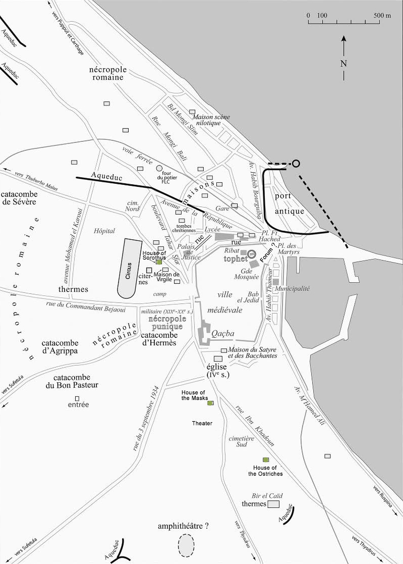 Hadrumetum is located on the bay of Hammamet at the edge of the fertile region of Sahel from which it drew its wealth. Choosing the side of Rome against Carthage during the Punic war, Hadrumetum was rewarded with the status of free town. Taking the side of Pompey, the city was heavily fined by Caesar after his victory at Thapsus. Nevertheless, the opulence of its houses adorned with luxurious mosaics testifies that the city experienced great economic development after its elevation to the status of colony, under Trajan.