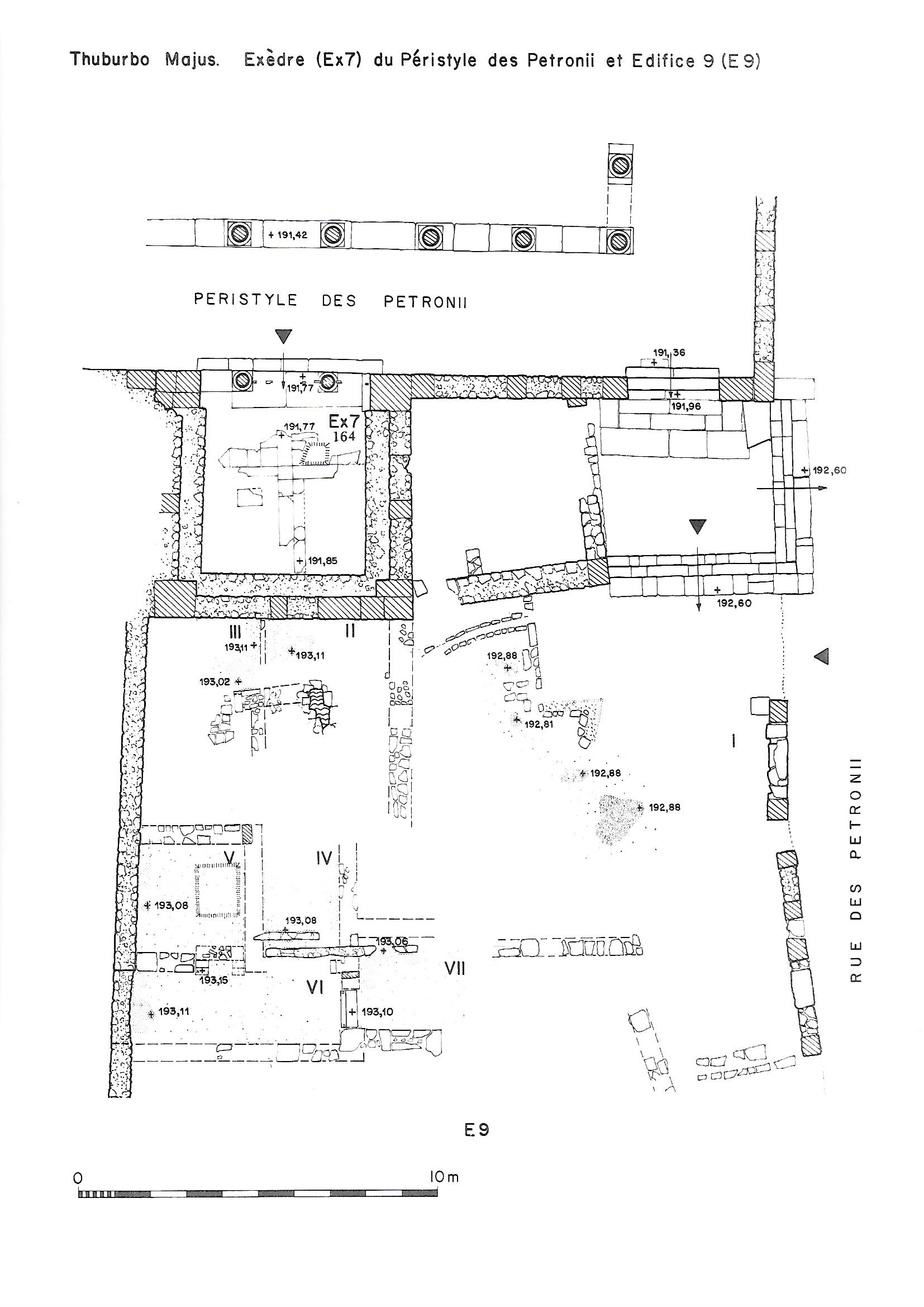 The courtyard of this large peristyle to the NE of the Summer Baths, dedicated by Petronius and his sons, may have been planted with avenues of trees as recommended by Vitruvius, and as in the Palaetra at Pompeii (Pan view, Fig. 1).