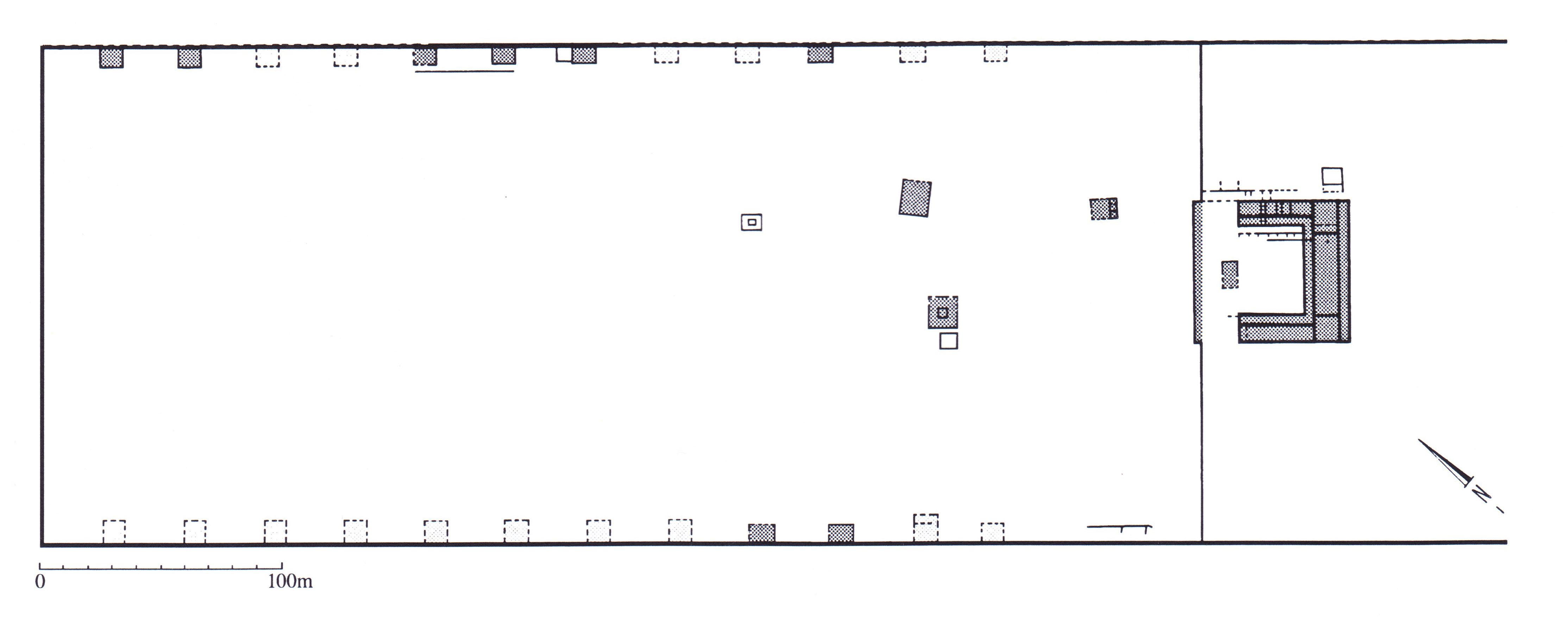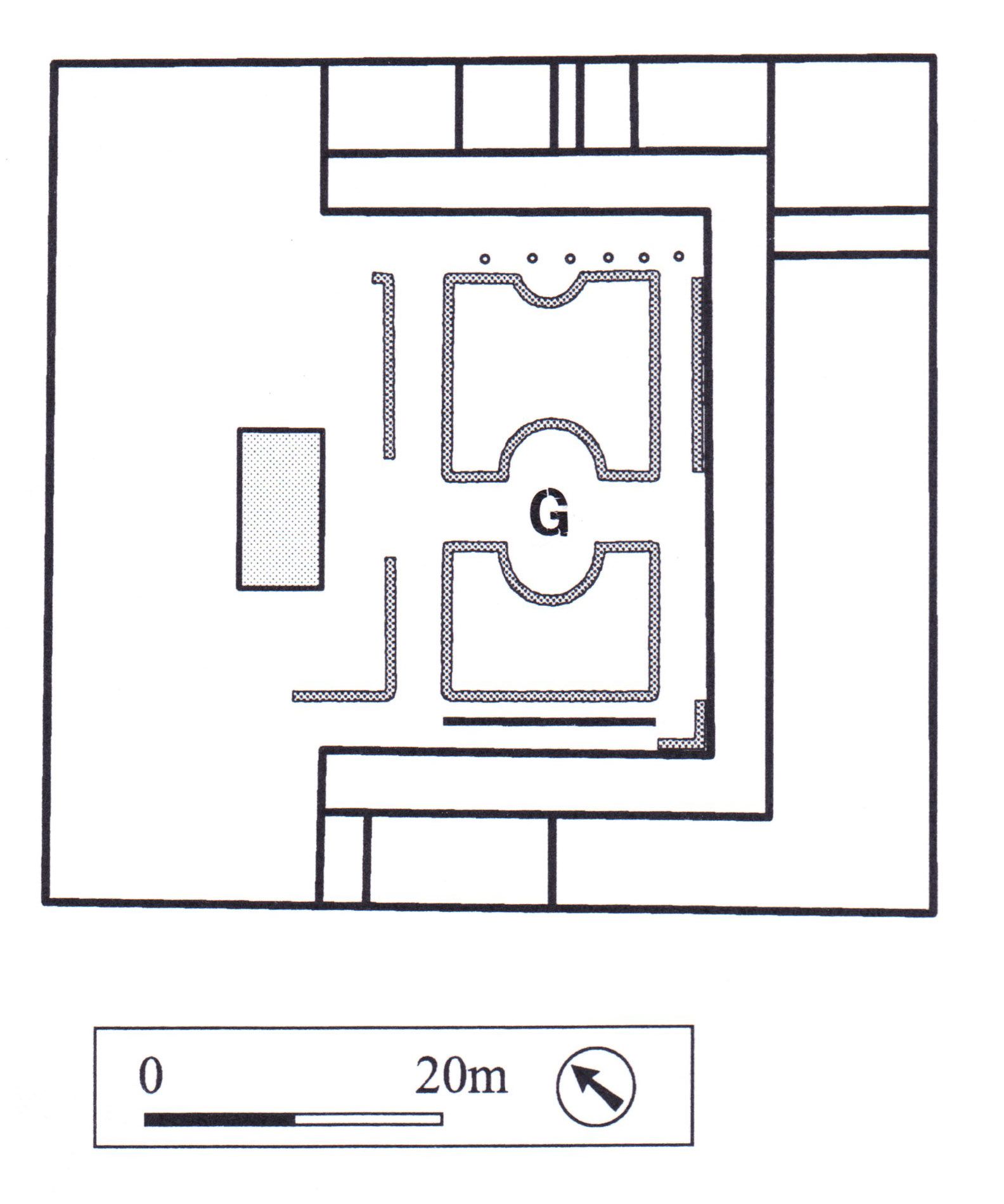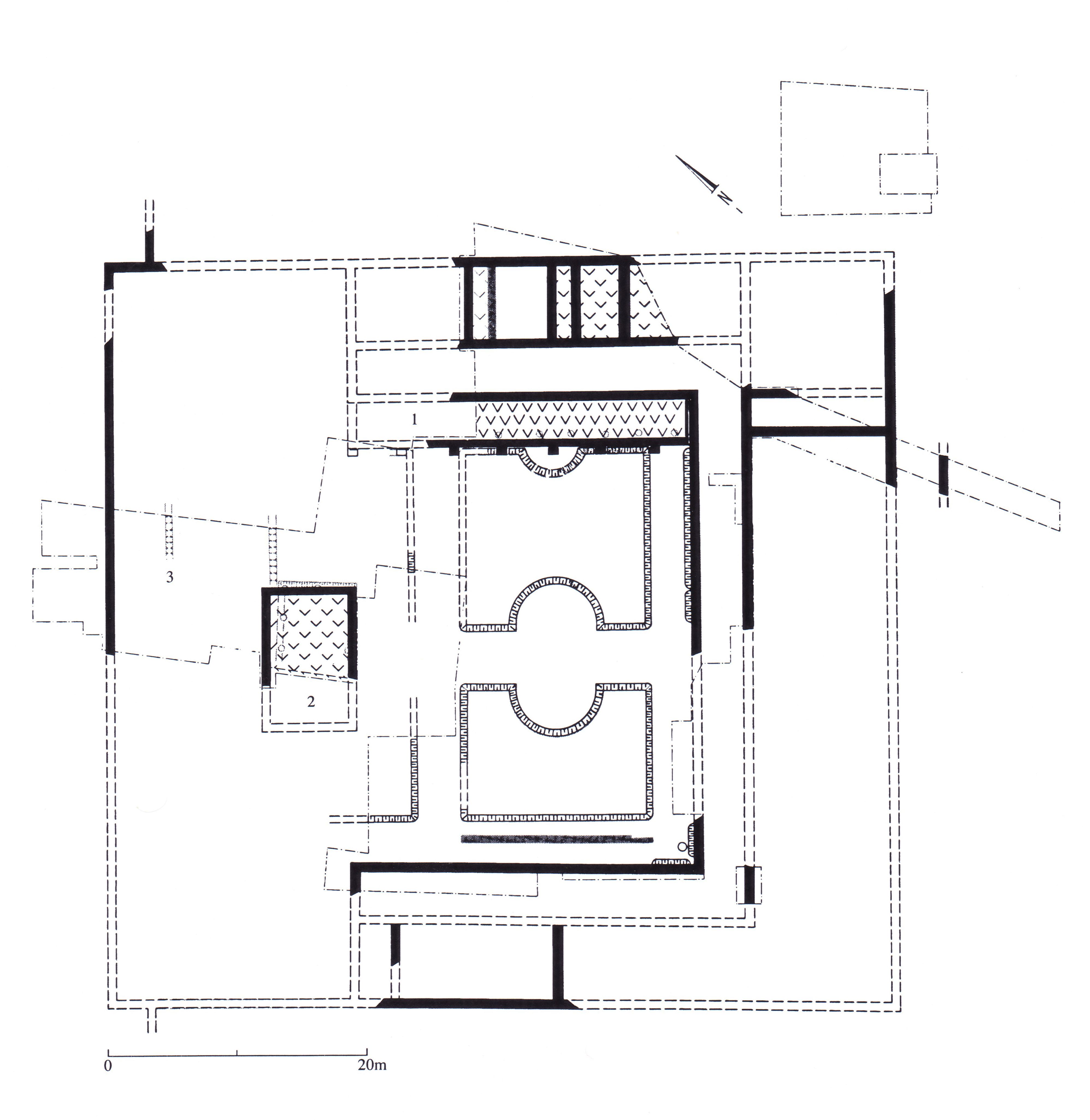 In the late 1st century, around AD 70, the timber-lined pool in the west was replaced by a masonry pool lined with water-proof plaster on the same spot (Fig. 5). This was possibly fed by water from a small stream. At the same time, the timber pergola was dismantled, its place taken by a large masonry pool, 3 x 22 meters in plan. The planting pattern of the courtyard garden was retained (Fig. 5) until after the middle of the 2nd century when the pools were destroyed and the garden leveled.