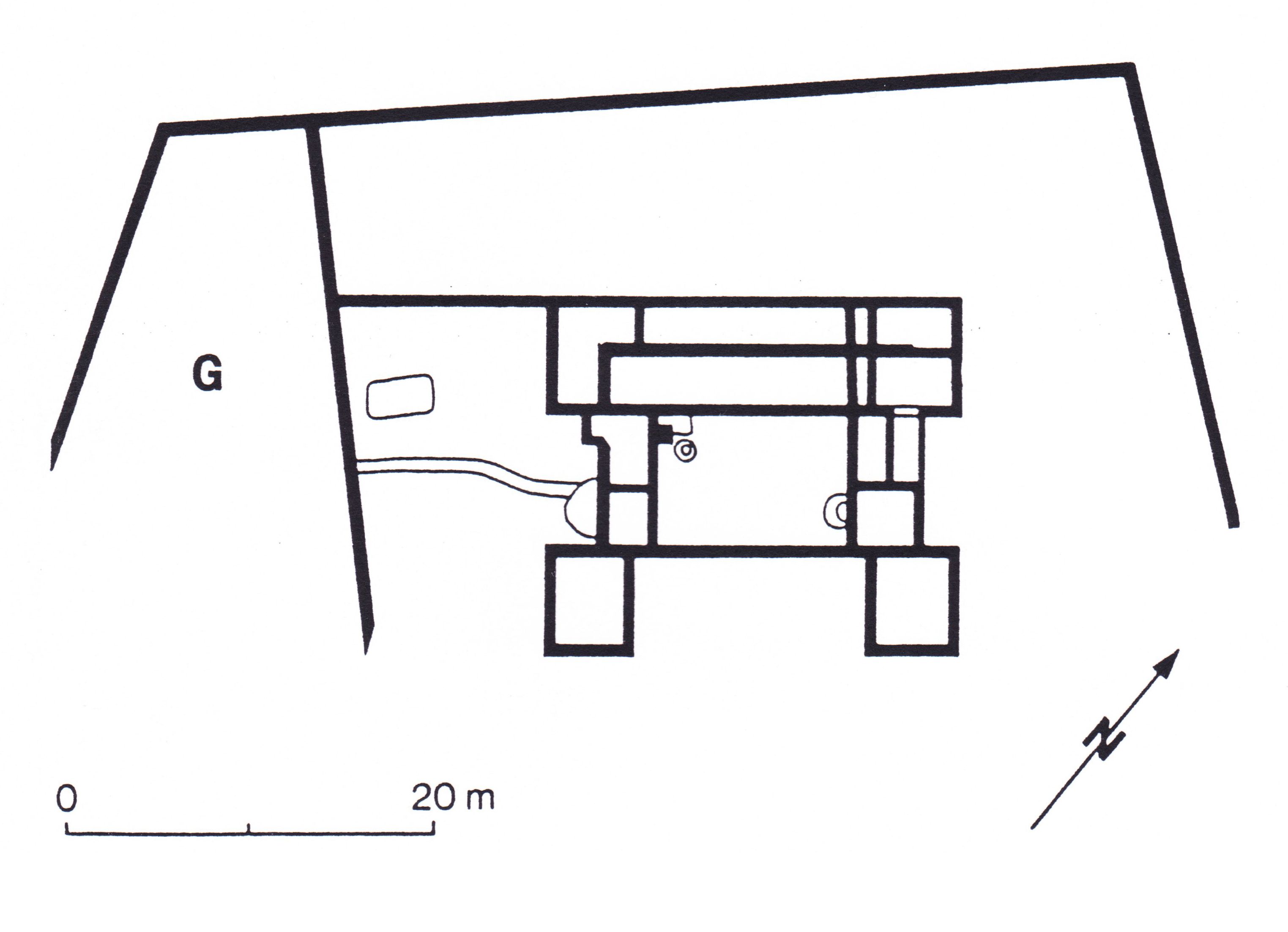 Only the residential part of this farm has been excavated. The house with a width of 22 meters had two protruding wings at the south. To the west of the house was an area of irregular proportions enclosed by a wall, and this has been interpreted as a kitchen garden (G in Fig. 1).