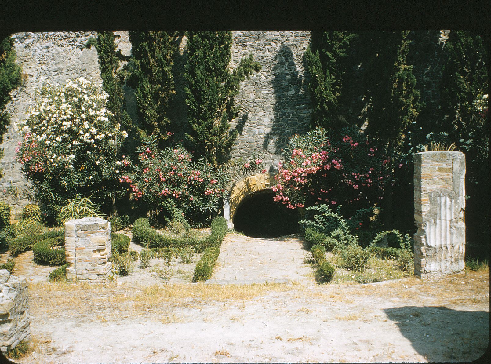 This house was partially excavated in 1829-1830 and again in 1850. The portico had a floor on the east slightly lower than the sections on the north and south. A pool (a) was located in the center of the garden with a semi-circular extension on the east end and two small marble posts which probably held herms. The pool measured 2.35 m. wide, 0.87 m. deep and was only excavated to a length of 6.50 m.