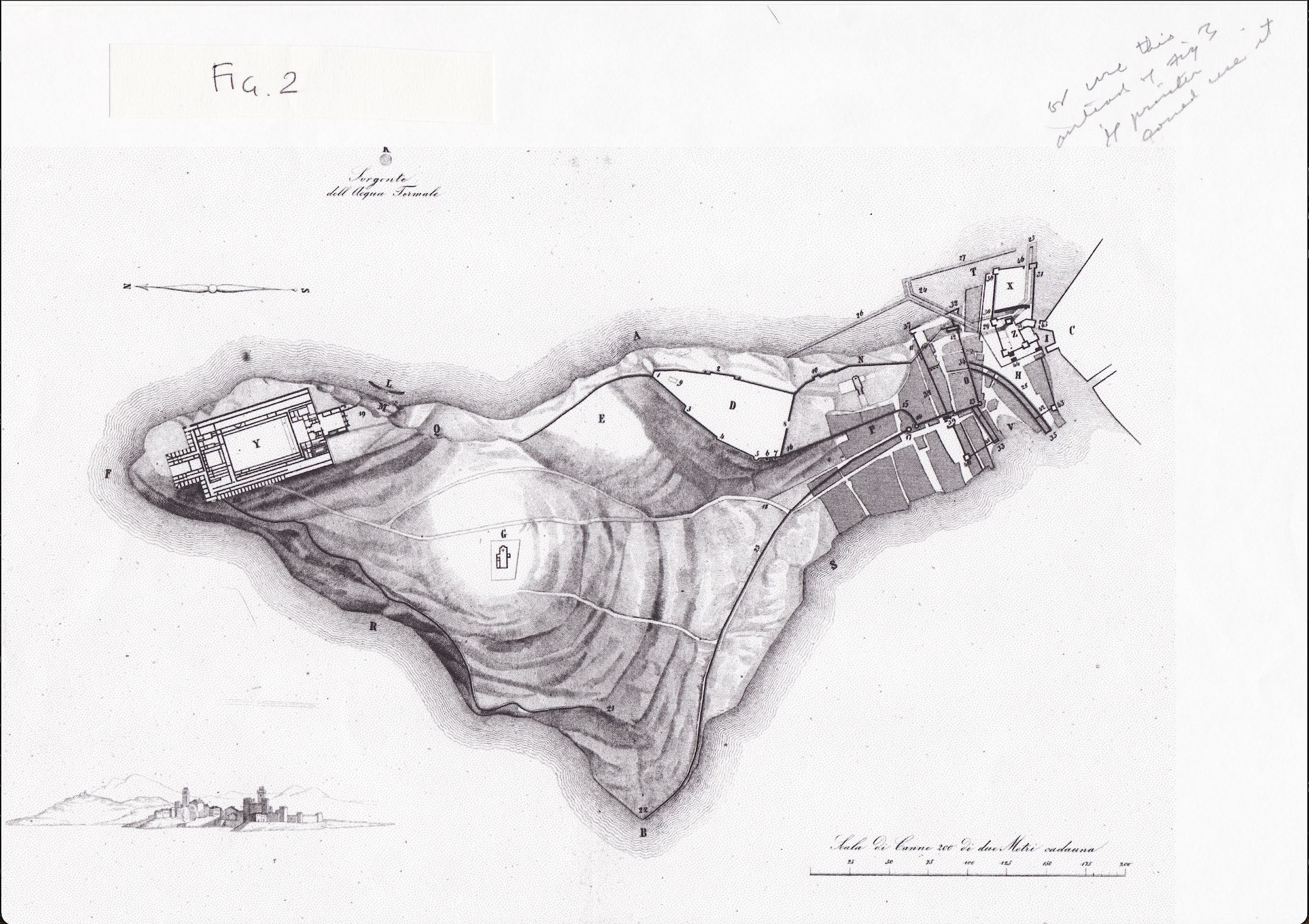 Sirmio is known from a citation in Catullus' XXXI° poem (paene insularum, Sirmio, insularumque ocelle ...) and in later road itineraries as a staging post (Sermione mansio) along the road between Verona and Brixia (Brescia), which passed to the south of the peninsula, forming part of the erritory of Verona. In several areas along this ancient coastline remains have been brought to light of large and sumptuous villas built on the coast, in large coves or high places, with beautiful panoramas.The remains of a villa, called by fifteenth-century visitors to the site "Grotte di Catullo", after Verona's poet Catullus, are situated at the northern tip of the Sirmione peninsula, on the southern bank of the Benacus (Lake Garda), the largest of the pre-alpine lakes (Fig.1). As one of the most interesting examples of Roman residential architecture in northern Italy, this villa deserves the designation of villa maritima, as other similar examples along the Campanium-Latium coast.The villa covers an area of around 20,000 square meters distributed on three terraces, which ascend the slope of the hill on a series of substructures. The building has a rectangular plan (167.5 x 105 meters), with two foreparts; on the S side at the main entrance and on the N side at the tip of the peninsula, towards which the villa faced, so as to be surrounded by the lake on three sides (Fig. 2).On the evidence of recent studies, the villa is dated to the Augustan-Tiberian period (end of the first century B.C. –start of the first century A.D.): it was constructed after the destruction of an earlier building, the existence of which has been documented in a small archaeological excavation beneath the floor of one of the rooms on the southern side of the villa. Modifications to the building, in particular the creation of the large baths area, date to the end of the first –second century A.D. The destruction of the villa came quickly, with all probability around the 3rd century: at that time the functioning of the villa seems to have stopped and no later maintenance or building interventions have been identified; a differing situation as regards the other villas in the lake Garda area, which had a continued life, with phases of great importance, up to the first half of the fifth century.The building, constructed as a whole and with axial and symmetrical criteria, is characterized by long terraces on the eastern, western and northern sides: these connect directly with the large terrace on the northern forepart, which was shaded by a veiled covering, as demonstrated by the characteristic elements which supported the posts found in this area. By the side of the terraces were long porticoes: the western one built over a double-nave cryptoporticus, which acted as a substructure, the eastern for the main part built directly on the natural bedrock. The residential rooms were distributed in the northern and southern areas, the western part of the latter being occupied by the baths complex (Fig. 3-4).While the substructures are well-preserved, the residential floor, situated on the higher level, has been subject to greater destruction over the course of the centuries, due to the systematic robbing of building materials, already started in ancient times, the collapse of part of the wall on the eastern side along the hill-side, and in the agricultural use of the land, presently occupied by a vast olive grove (Fig. 5). The villa has been excavated on several occasions from the start of the 19th century and subsequently backfilled, so that the plan and hypotheses for the reconstruction for a large part of the residential level, which has not been the object of new research in recent years, are based on the notes and drawings of the 19th century, not always reliable. Other excavations were conducted between 1941 and 1965; research aimed at defining the chronology of the building and resolving problems in the plan of several rooms in the southern area were undertaken between 1984 and 1994.The events endured by the structure render difficult and at times impossible, at present, to hypothesize the functions and characteristics of many of the residential rooms, as also with the various open spaces present within the building. Undoubtedly, other than the large peristyle (C), which occupied the central area of the building, other open spaces, now buried (courtyards or gardens), were to be found along the central N-S axis. In the southern part there was an open space (N), situated between the western part of the villa, destined as the baths complex, and the eastern part containing the living rooms. In this case, according to the interpretation of the director of the first excavations and more recently, the area functioned as a courtyard giving access and light to the rooms on its E, S and W sides. A wall divided the courtyard from the S side of the peristyle, to which direct access was possible by one or more entrances. Another hypothesis suggests that access between the two courtyards was not axial but by a side corridor, while a wall with windows would have permitted a view of the internal garden.Of the other open space (O), situated to the N, there is uncertainty as to its function. One can hypothesize, on the basis of the 19th century plans, an open space with porticoes on all four sides: perhaps another small peristyle. An element which would confirm its use as a courtyard or garden is the presence of a stone-built rainwater drain, still present in the 19th century and illustrated by Orti Manara in his publication on Sirmione. Some parts of this drain have been re-used in the walls of the Early Medieval church of San Salvatore in Sirmione. There are no precise indications for external gardens and it is only possible to hypothesize the natural setting in which the villa was situated. However it must be stated that artificial terraces had been made on the eastern side of the building, or more precisely the areas which corresponded to the 