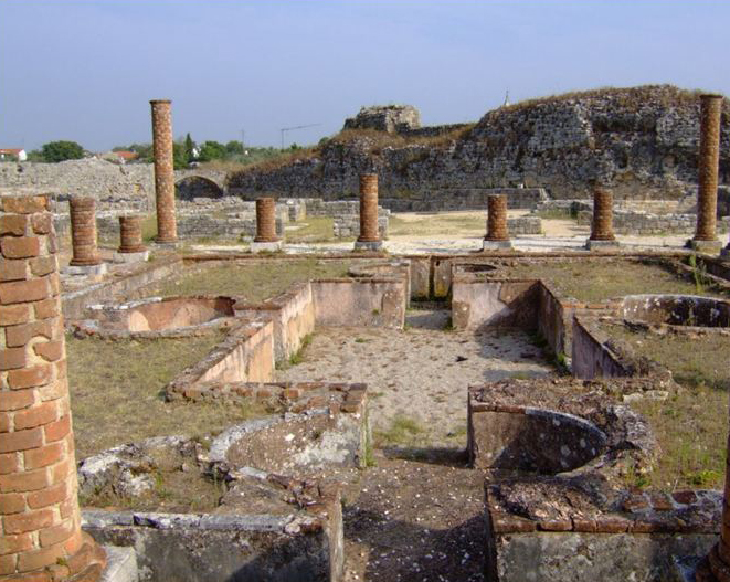 The pre-Roman oppidum of Conimbriga was made the capital of a civitas in the Augustan period and, thereafter, a forum, a public bath-house, an aqueduct and city walls were constructed. During the Flavian period, the city was made a municipium with ius Latii. At the end of the third or beginning of the fourth century AD, new fortification walls considerably reduced the area occupied by the city. In the time of the Suevi it was an Episcopal See, which was then transferred to Aeminium (the present day Coimbra) around A. D. 585, when the kingdom of the Suevi was conquered by the Visigoths. Further reduced in area and impoverished, the city survived until 986, at which date, according to Arab sources, it was destroyed by the great Muslim chief Almansor. In addition to the Augustan forum, which was completely rebuilt on a new ground plan under the Flavians, four bath houses have been excavated, and preliminary trial trenches established the plan of the amphitheater. Four domus have been excavated, three of which were left outside the wall built under the late empire. It is in these houses, all built around peristyles, that we find the gardens of Conimbriga.