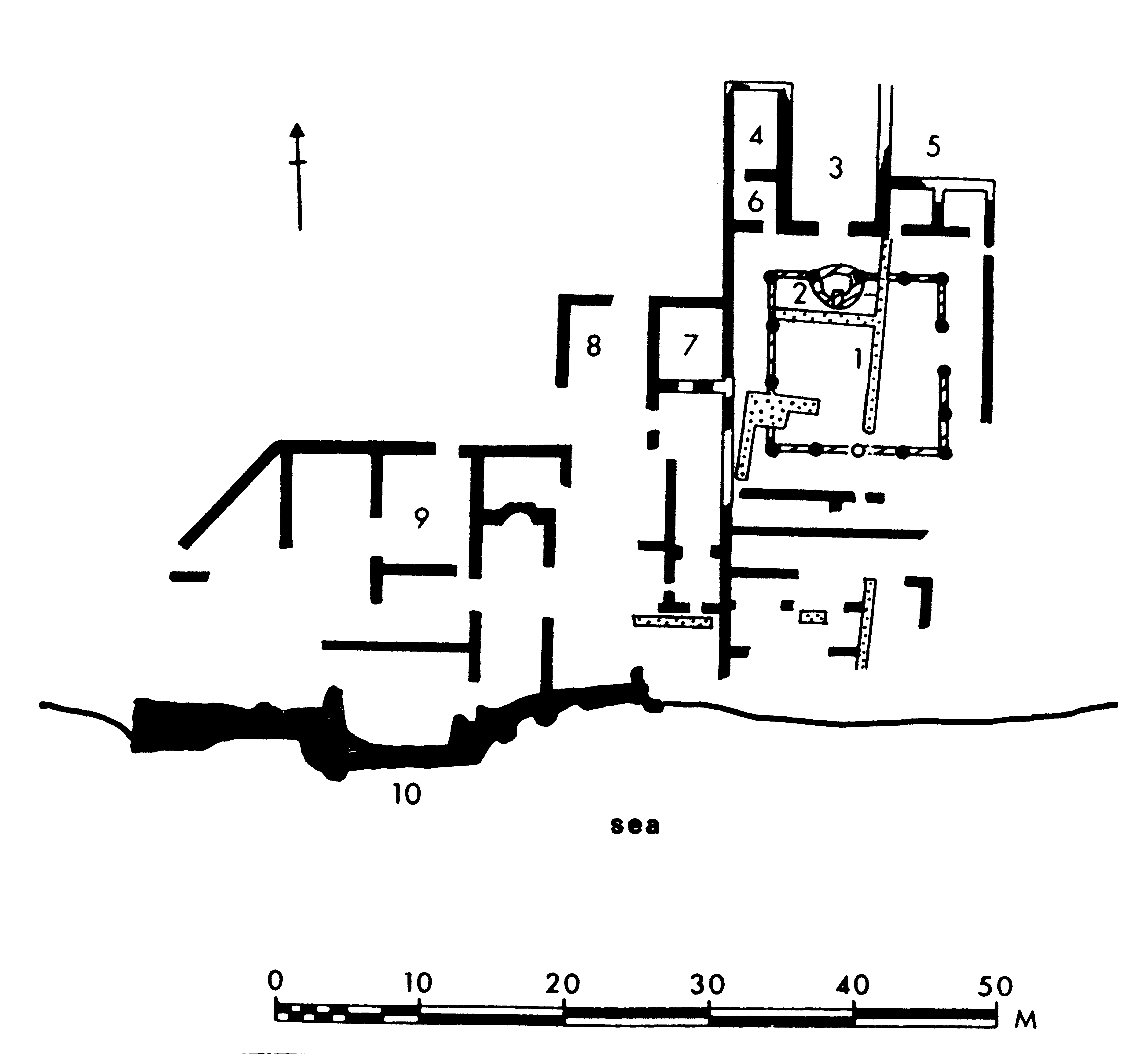 There is a rectangular fountain basin set at the south end of the peristyle facing the triclinium, probably of the second century A. D. (Figs 8 and 9).